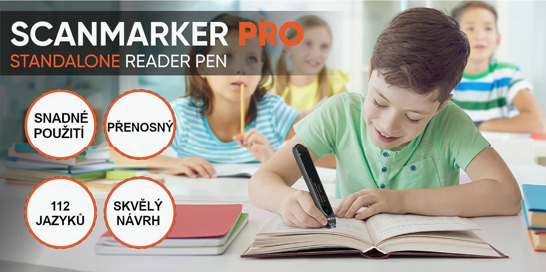 Scanmarker Pro je bezdrátové čtecí pero, které poskytuje vysoce kvalitní převod textu na řeč při skenování. Ve spojení s webovou aplikací Scanmarker Pro a jejími integrovanými výukovými nástroji poskytuje dokonalou podporu čtení a pomáhá budovat dovednosti pro samostatné čtení. Scanmarker Pro je efektivní čtecí zařízení pro osoby s dyslexií a jinými potížemi se čtením; naším cílem je pomoci každému uživateli stát se samostatným čtenářem.